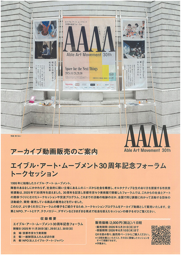 「アーカイブ動画販売のご案内/エイブル・アート・ムーブメント30周年記念フォーラム」