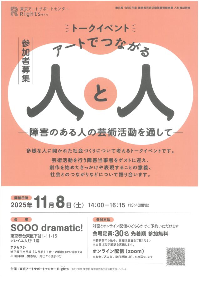 東京アートサポートセンターRights(ライツ)さんよりご案内いただきました。