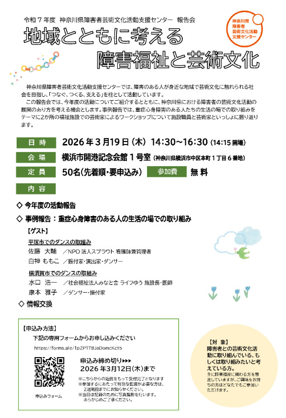 【神奈川県】3/19 令和7年度報告会「地域とともに考える障害福祉と芸術文化」